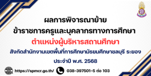 ประกาศผลการพิจารณาย้ายผู้บริหารสถานศึกษา ประจำปี พ.ศ. 2568
