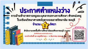 ประกาศตำแหน่งว่าง รร.วิทยาศาสตร์จุฬาภรณราชวิทยาลัย ชลบุรี