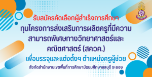 รับสมัครคัดเลือกผู้สำเร็จการศึกษาทุน สควค. เพื่อบรรจุและแต่งตั้งเข้ารับราชการเป็นข้าราชการครูและบุคลากรทางการศึกษา ตำแหน่งครูผู้ช่วย