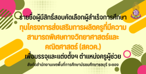 ประกาศรายชื่อผู้ผ่านการสอบคัดเลือกผู้สำเร็จการศึกษาทุน สควค. เพื่อบรรจุและแต่งตั้งเข้ารับราชการเป็นข้าราชการครูและบุคลากรทางการศึกษา ตำแหน่งครูผู้ช่วย