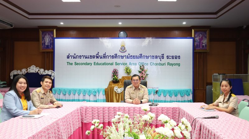 นางนิสา บรรจงการ ผอ. สพม.ชลบุรี ระยอง มอบหมายให้นายประภาพันธ์ วิเวก และนายจตุพันธ์ รุจิรานุกูล รองผอ. สพม.ชลบุรี ระยอง พร้อมด้วยนางสาวภาริณี วัฒนะภาราดา ผอ. กลุ่มนโยบายและแผน และศึกษานิเทศก์รับผิดชอบโครงการ เข้าร่วมประชุมชี้แจงแนวทางการจัดตั้งคำของบประมาณรายจ่ายประจำปีงบประมาณ พ.ศ. 2569 งบลงทุน ค่าครุภัณฑ์ ที่ดินและสิ่งก่อสร้างของโรงเรียนคุณภาพตามนโยบาย “1 อำเภอ 1 โรงเรียนคุณภาพ” เพื่อชี้แจงแนวทางการจัดตั้งงบประมาณ ปี 2569 และติดตามการดำเนินงานของโครงการ 1 อำเภอ 1 โรงเรียนคุณภาพ โดยมีดร.พัฒนะ พัฒนทวีดล รองเลขาธิการ กพฐ. เป็นประธาน ดร.ภูธร จันทะหงษ์ ปุณยจรัสธำรง ผู้ช่วยเลขาธิการ กพฐ. ชี้แจงแนวทางการจัดตั้งงบประมาณ ประชุมผ่านระบบสื่ออิเล็กทรอนิกส์ Zoom Meeting ณ ห้องประชุมตั้งเทวาประสิทธิ์ สพม.ชลบุรี ระยอง