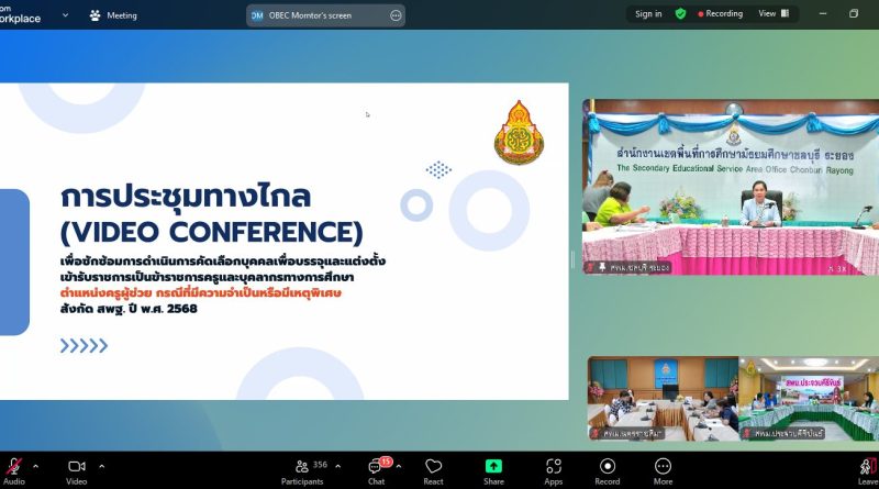 นางนิสา บรรจงการ ผอ.สพม.ชลบุรี ระยอง พร้อมด้วยนายประภาพันธ์ วิเวก รองผอ. สพม.ชลบุรี ระยอง และบุคลากรที่เกี่ยวข้อง เข้าร่วมประชุมทางไกล (Video Conference) โดยมีดร. พัฒนะ พัฒนทวีดล รองเลขาธิการ กพฐ. เป็นประธานการประชุม เพื่อซักซ้อมการดำเนินการคัดเลือกบุคคลเพื่อบรรจุและแต่งตั้งเข้ารับราชการเป็นข้าราชการครูและบุคลากรทางการศึกษา ตำแหน่งครูผู้ช่วย กรณีที่มีความจำเป็นหรือมีเหตุพิเศษ (ว16) สังกัด สพฐ. ปี พ.ศ. 2568 ณ ห้องประชุมตั้งเทวาประสิทธิ์ สพม.ชลบุรี ระยอง