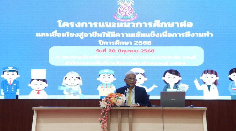 นางนิสา บรรจงการ ผอ.สพม.ชลบุรี ระยอง มอบหมายให้นายจิรกร ฐาวิรัตน์ รองผอ.สพม.ชลบุรี ระยอง เป็นประธานเปิดและบรรยายพิเศษ การอบรมโครงการแนะแนวการศึกษาต่อและเชื่อมโยงสู่อาชีพให้มีความเข้มแข็ง เพื่อการมีงานทํา ปีการศึกษา 2568 ณ หอประชุมโรงเรียนวิทยาศาสตร์จุฬาภรณราชวิทยาลัย ชลบุรี โดยมีวัตถุประสงค์เพื่อเป็นการพัฒนาศักยภาพครูแนะแนวให้มีความรู้ความเข้าใจเกี่ยวกับการแนะแนวอาชีพ และให้นักเรียนใช้เป็นแนวทางในการเลือกศึกษา ต่อหรือเลือกประกอบอาชีพได้อย่างเหมาะสมกับตนเองและสอดคล้องตรงตามความต้องการของตลาดแรงงาน และรองรับการพัฒนาเขตพัฒนาพิเศษภาคตะวันออก (EEC)