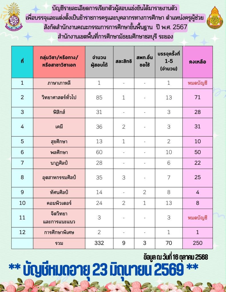 บัญชีรายละเอียดครูผู้ช่วยประชาสัมพันธ์กลุ่มบริหารงานบุคคล บัญชีคงเหลือ ตำแหน่งครูผู้ช่วย ปี 2567 30 June 2025 ยุวนุช เกาะสูงเนิน