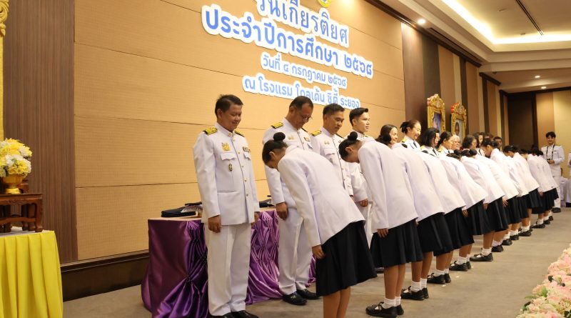 นางนิสา บรรจงการ ผอ.สพม.ชลบุรี ระยอง มอบหมายให้นายประภาพันธ์ วิเวก รองผอ. สพม.ชลบุรี ระยอง เป็นประธานในงานวันเกียรติยศ และประดับเครื่องหมายบนเครื่องแบบชุดพิธีการให้แก่นักเรียนระดับชั้นมัธยมศึกษาปีที่ 1 ระดับชั้นมัธยมศึกษาปีที่ 4 เข้าใหม่ และนักเรียนย้ายระหว่างปีประจำปีการศึกษา 2568 โดยโรงเรียนเฉลิมพระเกียรติสมเด็จพระศรีนครินทร์ ระยอง ในพระราชูปถัมภ์สมเด็จพระเทพรัตนราชสุดาฯ สยามบรมราชกุมารี และมีนายมนตรี คนเล ผอ.โรงเรียน กล่าวถึงวัตถุประสงค์ในการจัดกิจกรรม ณ ห้องสร้อยเพชร โรงแรมโกลเด้น ซิตี้ ระยอง