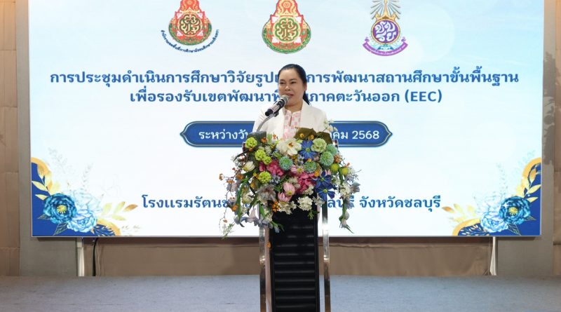ดร.นิสา บรรจงการ ผอ.สพม.ชลบุรี ระยอง เป็นประธานเปิดการประชุม โครงการการศึกษาวิจัยรูปแบบการพัฒนาสถานศึกษาขั้นพื้นฐานเพื่อรองรับเขตพัฒนาพิเศษภาคตะวันออก ณ โรงแรมรัตนชล อ. เมืองชลบุรี จ. ชลบุรี มีวัตถุประสงค์เพื่อศึกษาสภาพปัจจุบัน ปัญหา และแนวทางการพัฒนาสถานศึกษาในพื้นที่ EEC ที่เหมาะสมกับการจัดการรองรับเขต EEC โดยศึกษาร่วมกับโรงเรียนในโครงการของพื้นที่ที่มีต้นแบบการพัฒนาสถานศึกษาในระดับดีเลิศและนวัตกรรมต้นแบบในเขตพื้นที่ EEC โดยผ่านกระบวนวิจัยอย่างเป็นระบบ เป็นที่ยอมรับของทุกภาคส่วน ซึ่งสามารถนำไปเป็นแนวทางหรือกรอบอ้างอิงสำหรับโรงเรียนอื่น ๆในลักษณะโมเดลการพัฒนาหรือพื้นที่ต้นแบบได้ ทั้งนี้ สพฐ. มอบหมายให้ สพม.ชลบุรี ระยอง เป็นเจ้าภาพหลักในการดำเนินการ กำหนดจัดกิจกรรมในวันที่ 19 – 20 สิงหาคม 2568