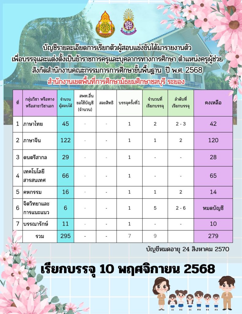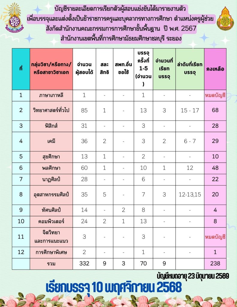 บัญชีรายละเอียด ตำแหน่งครูผู้ช่วย ปี พ.ศ. 2568