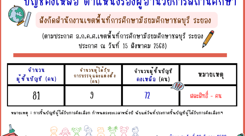 บัญชีคงเหลือ ตำแหน่งรองผู้อำนวยการสถานศึกษา