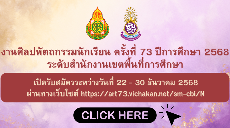 ข่าวประชาสัมพันธ์กิจกรรม สพม.ชลบุรี ระยองประกาศประกาศ สพม.ชลบุรี ระยอง 19 December 2025 ภิญโญ เพิ่มพูล งานศิลปหัตถกรรมนักเรียน ครั้งที่ 73 ปีการศึกษา 2568 เปิดรับสมัครระหว่างวันที่ 22 – 30 ธันวาคม 2568
